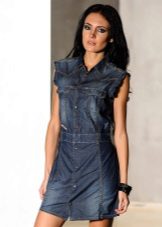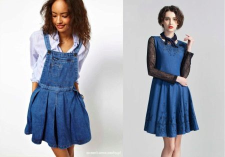 If the denim dress has a length of “midi” or “maxi”, then the jeans top should be shortened, mini-sundresses can also be combined even with jeans raincoats. Layering will look good - you can put on a shirt over a sundress, and a vest on top.