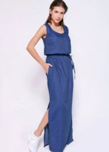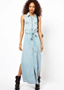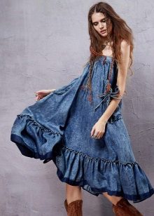 It is not hot in denim, it does not constrain movement, and a free cut will not interfere with activity. You can wear such sundresses with shoes on a flat sole, even sneakers are allowed!