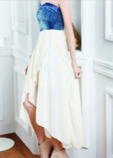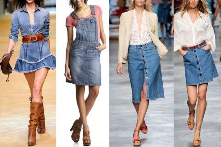 Today at the peak of fashion models sundresses with a maxi skirt. It should be soft, made of thin denim, “hugging” the silhouette. Models look interesting, reaching up to the knee in front and falling to the shoes at the back - this option will look great at an evening event.