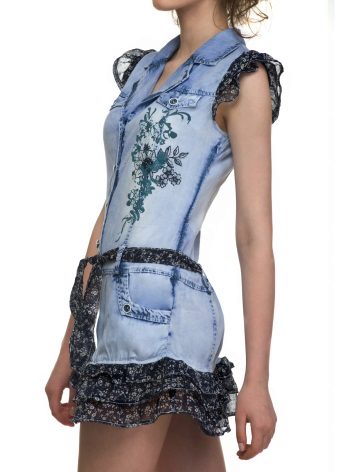 Another denim's favorite decor is metal. Metal rivets, zippers or even spikes are a great addition to this material. The denim sundress miraculously holds its shape and metal jewelry will not get lost and will “leave” the product, so girls who want to make the look a little more brutal will like sundress models with this decor.