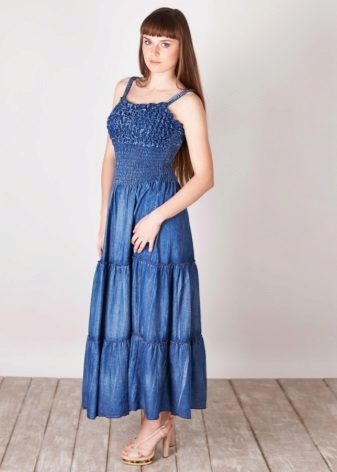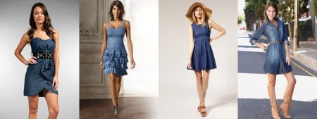Denim casual sundresses have a hundred styles - a bustier or on straps of different widths, with a zipper or buttons, a straight or A-shaped silhouette, with a sun skirt or the option of "floor".