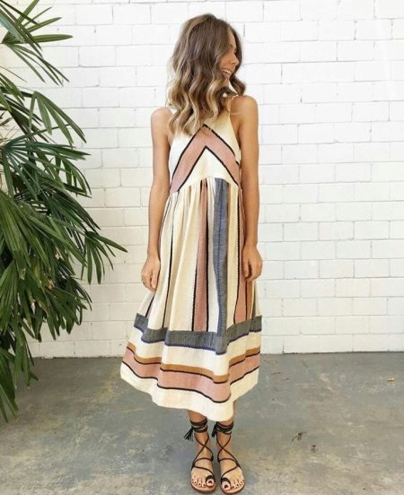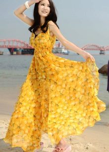 Finally, the maxi length when the hem of the sundress is to the floor. These models look impressive and elegant, but it is not always convenient to actively move around the city in them.