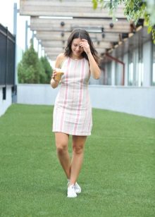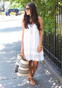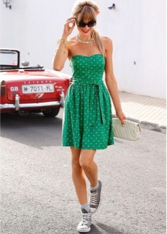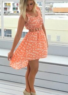 Sundresses can be worn with any shoe, but in summer, the choice most often falls on sandals, flat shoes or heels, ballet flats, moccasins, sneakers. In combination with leather, you can put on shoes on the platform.