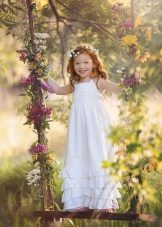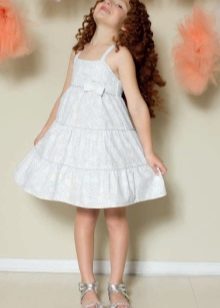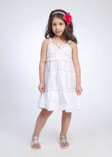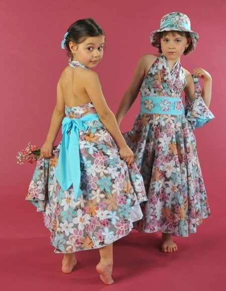 Under a summer dress, you can pick up a cape, bolero or figaro. These options are more suitable for older girls. Summer outfit goes well with different hats. For teenage girls, you can offer a denim jacket for a long sundress. Of shoes, preference, of course, is given to light shoes and sandals. For solemn moments, under a sundress, you can pick up light socks.