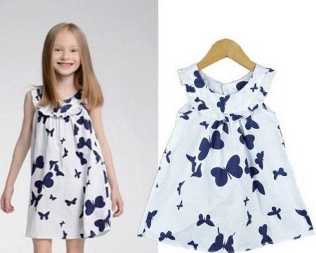 This summer dress is enjoyed by both babies and older girls. It is good to endure heat in it, it gives freedom of movement. Mostly sundresses are sewn from cotton. It is considered an eco-friendly fabric. It is completely harmless to the child's body and is appreciated by mothers for the absence of allergies to it, good absorption properties, the ability to skin breathe, wearing comfort and care.