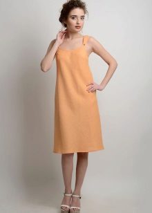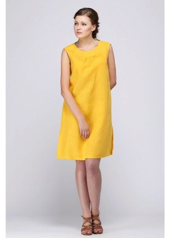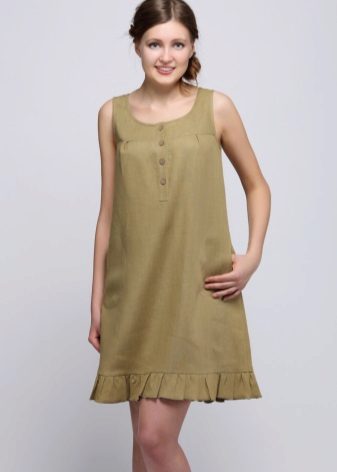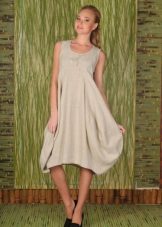 Lovers of a simple cut will like very laconic models without unnecessary details and decoration linen sundresses A-silhouette (trapezoid), straight cut. Such models are distinguished by excellent quality of cut, used fiber, color fastness, interesting color scheme.