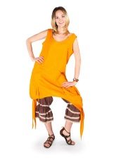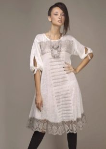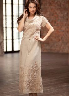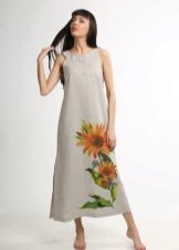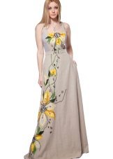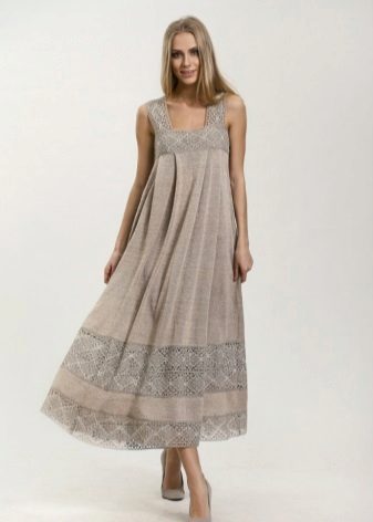 A style with ethnic motifs is very popular among linen sundresses - lace inserts in a characteristic ethnic style, embroidery, and cut details enhance the effect.