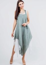 The novelties that stylists delight us in the lineup of linen sundresses amaze with the imagination of cut and style variety. Asymmetric models, models with different hem lengths, models with an abundance of embroidery with beads, sequins, with metal inserts, decorative inserts in the form of appliques are also in fashion.