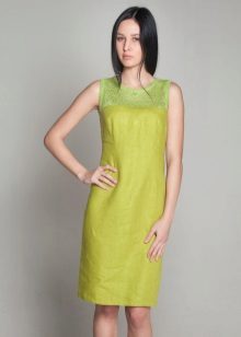 In the office, business women prefer to wear a linen sundress up to the knee length or slightly higher, usually a straight cut or A-shaped silhouette. Business sundress made of linen in a restrained color scheme. It can be supplemented with a belt, belt.