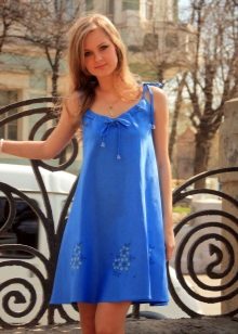 - A straight-cut sundress has expanded its boundaries of application - now in this outfit you can go to the office, and to a summer party and to nature. Such a sundress can be on thin straps or in the form of a neckline, on the buttons in full length or with a zipper, with or without a belt. Additionally, the model is decorated with decorative belt loops, patch pockets, embroidery, beadwork, etc.