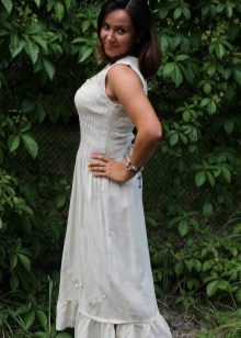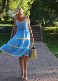 - Long sundresses on the floor have become popular in several recent fashion seasons. Combined with lace trim, inserts, frills and ruffles, decorated with embroidery, they became a real hit for all ages of fashionistas. Among this model there are antique stylized sundresses resembling an ancient Russian costume.