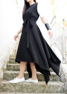 - Models in the form of a "balloon" were loved by those who try to hide the flaws of the figure, especially near the waist and hips. This model, loose in the abdomen and tapering to the hem, will also appeal to pregnant and lactating mothers.