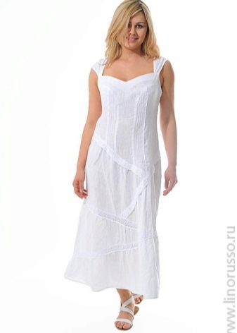 Flax sundress is ideal for overweight women. The very concept of a sarafan allows you to feel free and at ease in it. In addition, a free cut allows you to hide all the flaws of the figure, visually gives harmony and pulls growth. In order to hide a large breast, a flax dress with a smell is ideal. For women with overweight and a fat figure, a high-waisted model or a freely sitting sundress with a straight cut will be an excellent option.