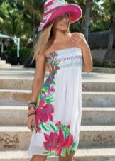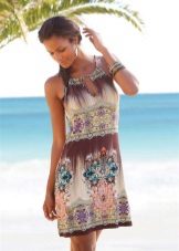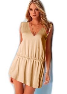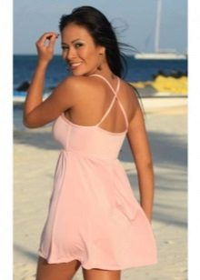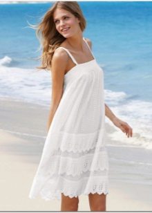 Beachwear was created in order to hide the swimsuit before coming to the pond, as well as to enable the girl to look decent at the beach bar or in the gift shop. An ideal option for this would be a sundress. Its advantages are obvious: the dress is easy to put on and take off, it does not compress the skin, especially sensitive after the sun.