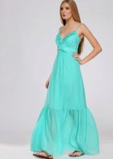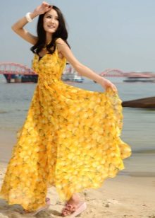 Maxi sundresses will also look great over a swimsuit. Due to the length of the skirt, these models can be more frivolous in material or cut - for example, translucent, have a pronounced neckline or open back. Such models are well suited for chubby girls, as they are sewn wide and perfectly hide the flaws of the silhouette.