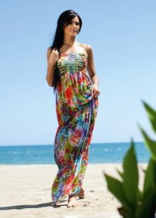 The sundress is also practical in that it makes it possible to change clothes imperceptibly for others, if the beach does not have a special cabin. A variety of colors, fabrics and styles will allow you to choose a model that emphasizes the advantages and will look advantageous.