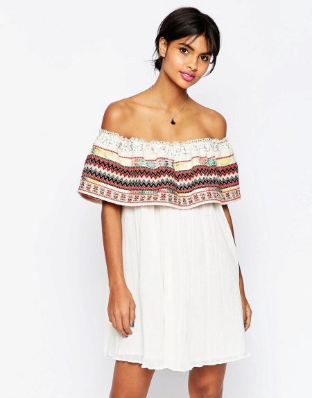 Open shoulders are a popular element in the tailoring of women's clothing. These options are ideal for hot summers. Beautiful bare shoulders look unusually attractive - sexy, but not vulgar.