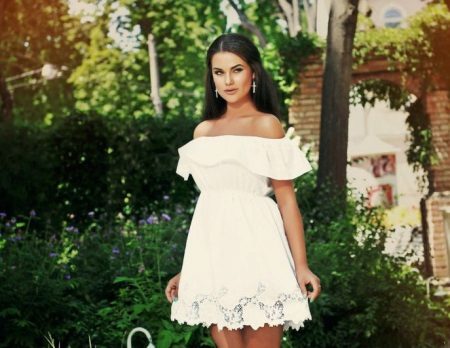 It is worth continuing the shuttlecock, going over the shoulder, with a frill along the neckline - and this will immediately add a size or two to the bust, even if it seems to its owner almost invisible. The bare shoulder in itself carries a powerful charge of sexuality, and in combination with an emphasis on the neckline, the combination will turn out to be gorgeous.