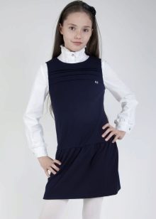 A school sundress can be either of a classic cut or have other styles. The main thing is that the girl herself can dress and pick up a set for a sundress without outside help. Today, designers of children's clothing offer a lot of such models.