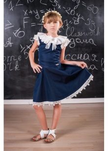 A blue school sundress is the most winning option for every day. Shades of blue are considered neutral by right, they set up students in a serious way.In addition, this color is the least easily soiled of all business that parents will like. There are many variations of blue that do not look boring at all: