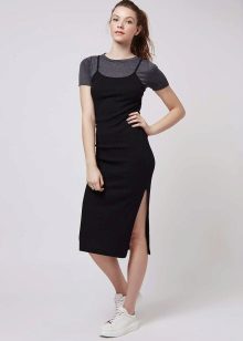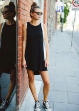 - This lightweight black sports dress is perfect for every day. You can wear it not only with sandals, but also with sneakers, sneakers, slip-ons. Do not forget to complete the look with a clutch and sunglasses.
