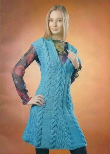 Bright knitted sarafans of blue, pink, green, yellow, orange color never go out of fashion.