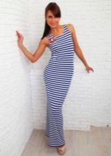 The color of the striped sundress can be any. A black and white solution is always relevant. A blue and white striped sundress is associated with a marine style - in the spirit of fashion trends. By the way, things of a marine style are suitable not only for holidays, they can be worn both at work and in the evening for a romantic meeting.