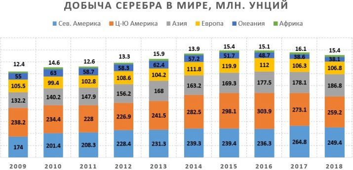 Natural mineral formations contain a significant proportion of this precious metal. A quarter of the total silver is mined from there, followed by polymetallic ores, including copper, cobalt, gold, nickel, in which this noble metal is a by-product.