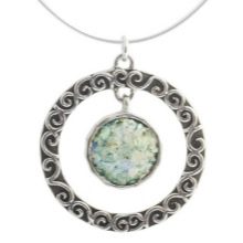 Silver necklaces look luxurious, especially those with Roman glass. A similar insert is not used outside of Israel. Ancient glass lay for centuries in the ground, so it was covered with patina.