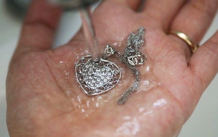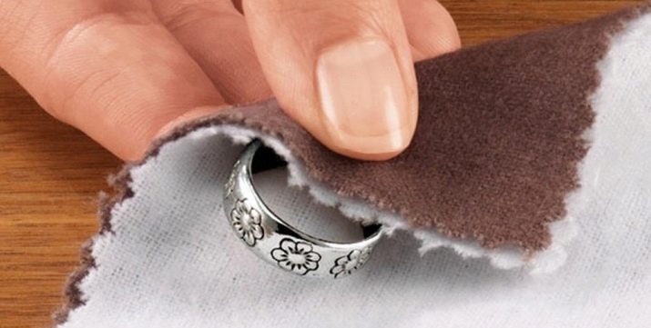 The resulting mass should be applied to the fabric and thoroughly wipe the contaminated product with it, paying particular attention to the relief areas. The mixture is not washed off the product for 15-20 minutes. After that, the silver is washed in running water and wiped dry.
