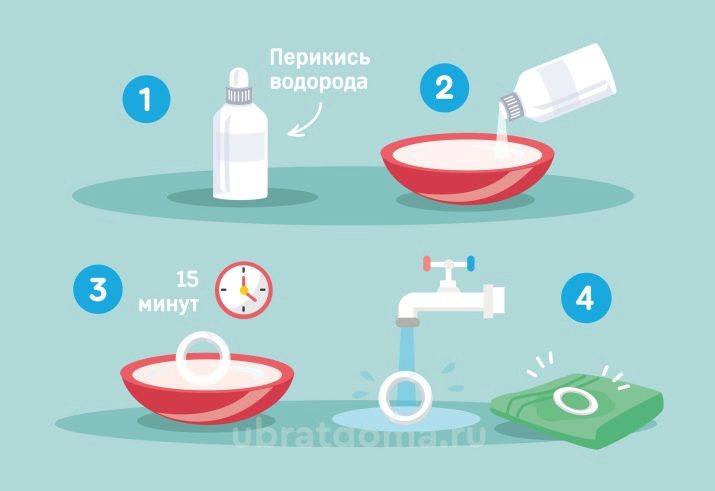 Such products can be cleaned in a simple and reliable way, involving the use of a mixture of peroxide and baking soda. These funds must be mixed to obtain a homogeneous mushy mass.