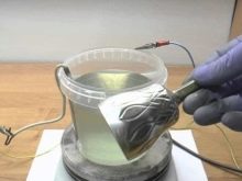 - The solution is heated. In this case, control over the interaction of metal and chemicals that make up the working solution is necessary.