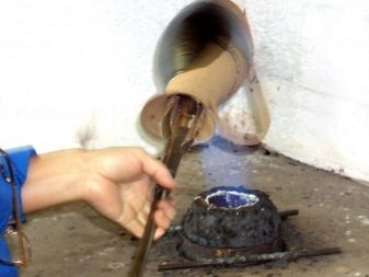 An old recipe suggests use of a similar ternary alloy added in portions. Then the prepared mixture is poured into a cast-iron container and remains in it until it hardens. The cooked pancake breaks into small pieces and melts again, but flux and sulfur are already added to it.