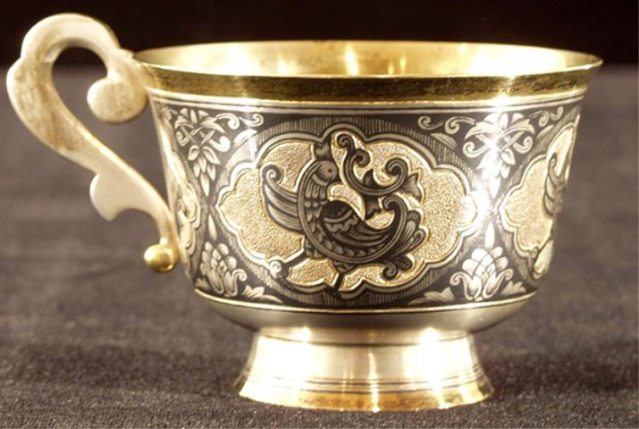 The pre-revolutionary Russian method of blackening was developed by Professor Spassky. Its essence lies in the separate preparation of silver, lead sulphide and copper sulphide. Then they are combined into containers, creating a single alloy. The thick mixture is re-melted using the professor’s unique technology. And only after that it is postponed until complete cooling.