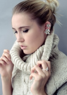 These models will undoubtedly appeal to girls who like to focus on jewelry. They are usually made of gold or silver plated metal. A variety of thin chains are used as decor elements, with the help of which the clips are attached to the upper part of the ear, and the base is threaded through the earlobe. A great option for an evening look.