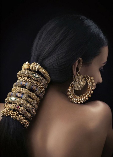 This jewelry is quite large, but it is surprisingly beautiful. Most often, ethnic motifs, in particular, the inhabitants of the East, are taken as the basis for their design. Such models are made of wicker metal elements interspersed with a variety of natural or precious stones, rhinestones and pearls.