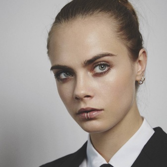 A beautiful piercing in the ear will look great with many evening ensembles, especially if it is supplemented with a regular earring on the earlobe. A high hairstyle that exposes the ears will look impressive in such a kit.
