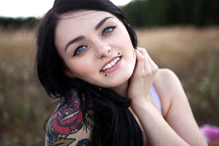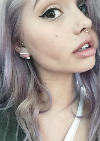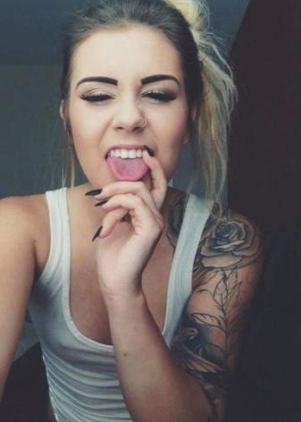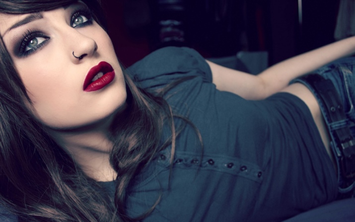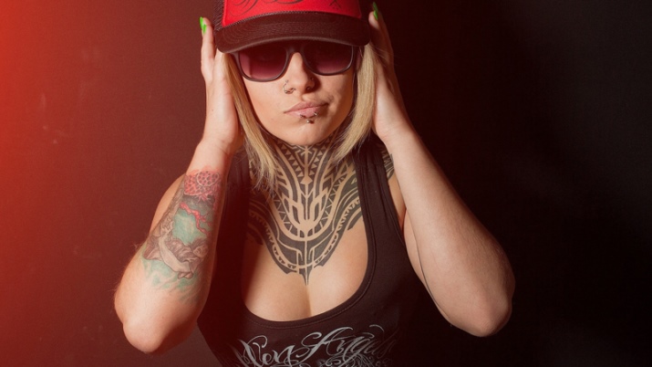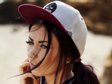 Young women with several punctures on the nose and lips look very bright and original. Such beauties can emphasize their spectacular beauty with a simple monophonic top, a stylish baseball cap and complement the look with sunglasses.