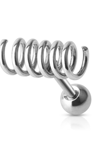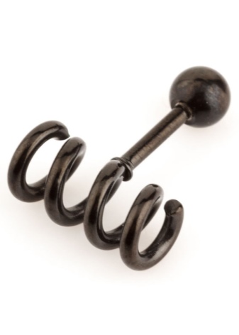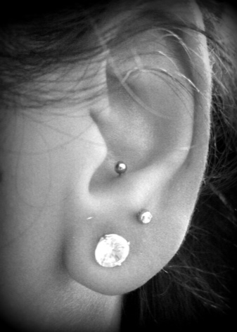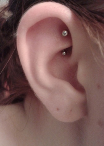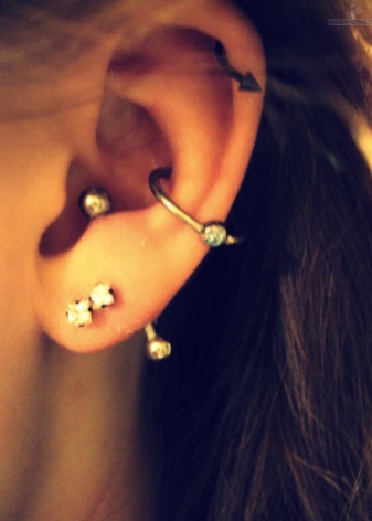 - For piercing anti tragus, it is worthwhile to select straight and slightly curved barbells or rings. If the puncture has an entry point in the earlobe, then simple models with a straight shaft should be worn. If the puncture is made only in the cartilage, then the bar should be small.