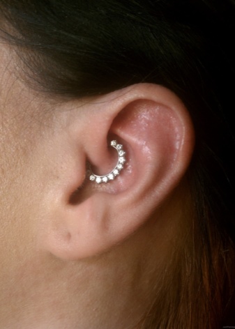 - A piercing called Day's is performed at the site of the protruding cartilage, which is located very close to the auditory canal. For this puncture, the ideal solution would be rings, half rings or curved rods.