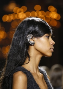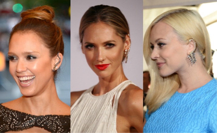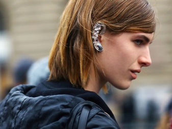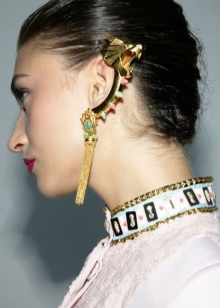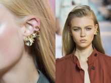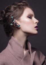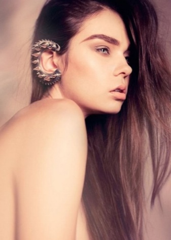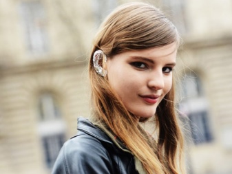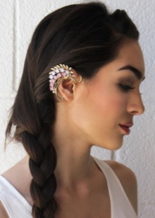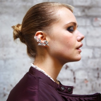With these earrings, stylists advise wearing hairstyles in which the hair is combed to one side. Then the ear decorated with cuff will be the focus of attention of others. It blends very nicely with the French braid, ponytail and classic neat “shell”.