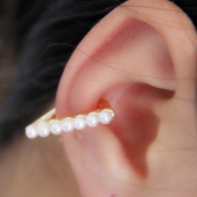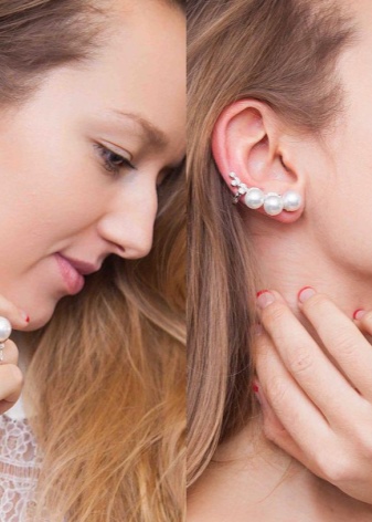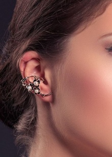 Contrary to the opinion of the excessive extravagance of such earrings, there are small cuffs that are appropriate to wear even for a business meeting. As a rule, they are made of silver and decorated with delicate discreet stones or pearls.