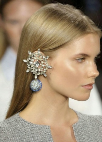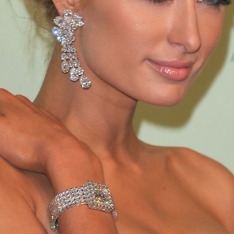 - Earrings with bright stones are suitable for dark-haired and red-haired girls, and blondes should give preference to delicate shades with pale gems.