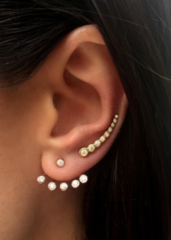 Very often, cuff earrings are encrusted with cubic zirconias or zircons. These are artificially created analogues of diamonds, which are also almost indistinguishable from real ones.