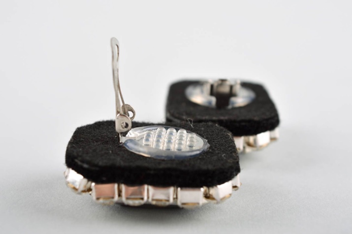 The most feminine and exquisite clips are rightfully recognized as pendants. Such elongated options can be complemented by beads and various stones of natural and artificial origin. The specimens in which the pendant has a beautiful edging in a vintage style look especially elegant. As a rule, such jewelry is equipped with clasps - clips that can be easily loosened or pressed more tightly to the earlobe.
