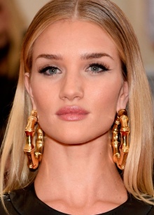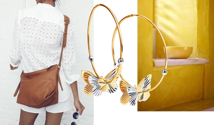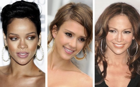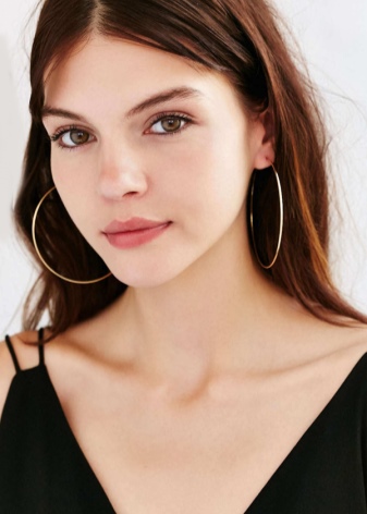 Today, the trend is gold earrings in the form of rings. They are ideal for all girls, regardless of face shape. This jewelry can be worn to embody various bows. They will decorate a business image, as well as add sophistication to a light, summer bow.