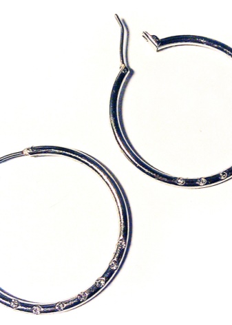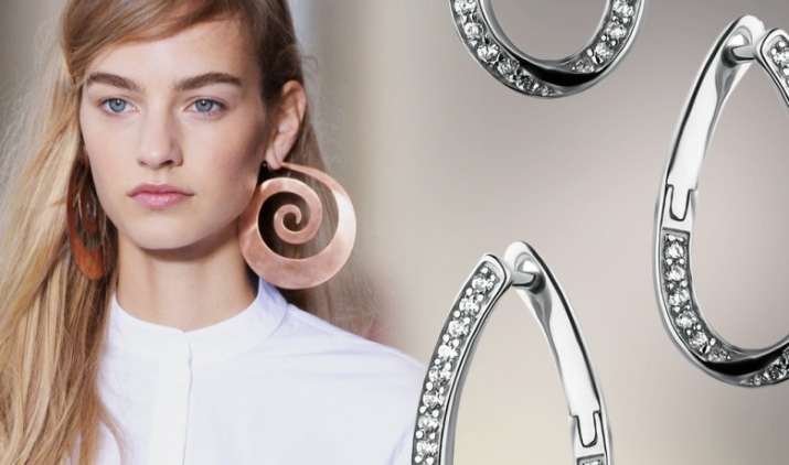 Earrings in the form of small rings are suitable for women of age. Large earrings make the ear heavier, and outwardly it looks ugly. The ideal solution would be jewelry as small rings. They allow you to emphasize the elegance of a woman, and will become an exquisite decoration of a luxurious image.