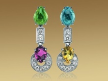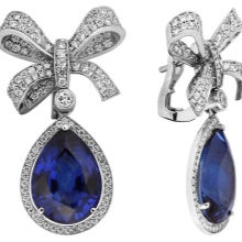 The most attractive luxurious are earrings with blue sapphires, diamonds and emeralds.