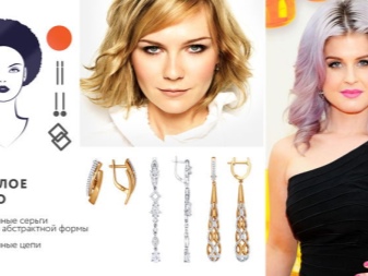 - Fashionistas with an elongated or triangular face structure are recommended to wear rounded earrings. Laconic models in the form of rings will look most harmoniously. Such ladies should refuse from refined products with pendants.