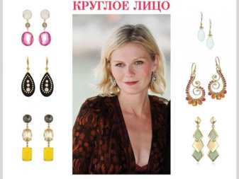 - Ladies with a round face should not wear round earrings. For them, square copies or elongated jewelry with elegant pendants are literally created. Similar products visually narrow the face.